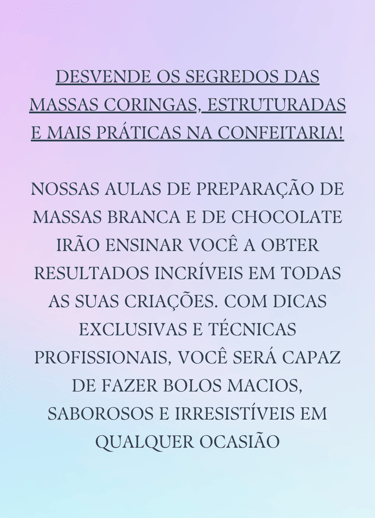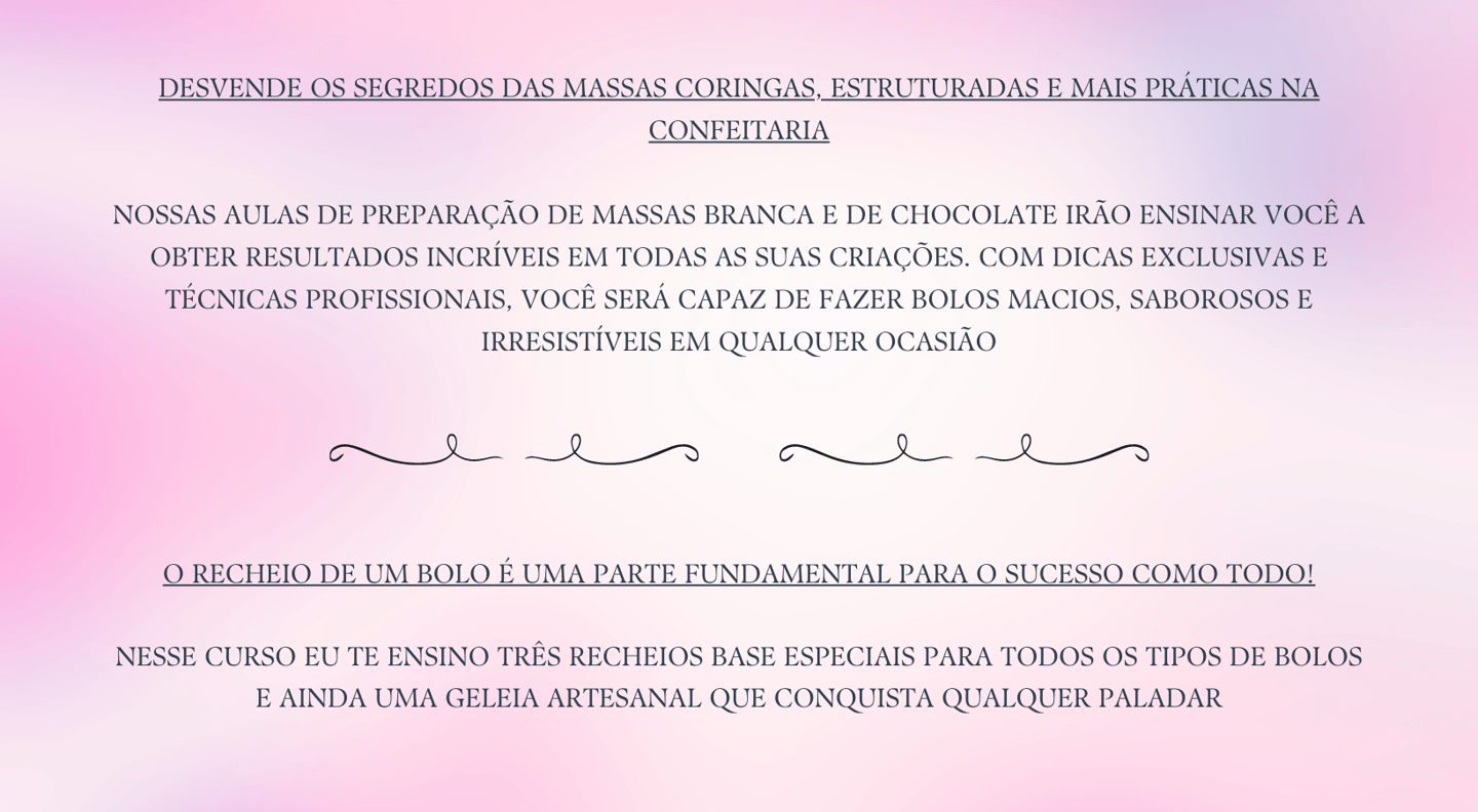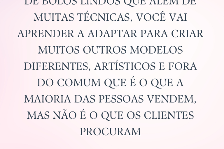 Se você é apaixonado por bolos e deseja se destacar no mundo da confeitaria, nosso curso é perfeito para você.
