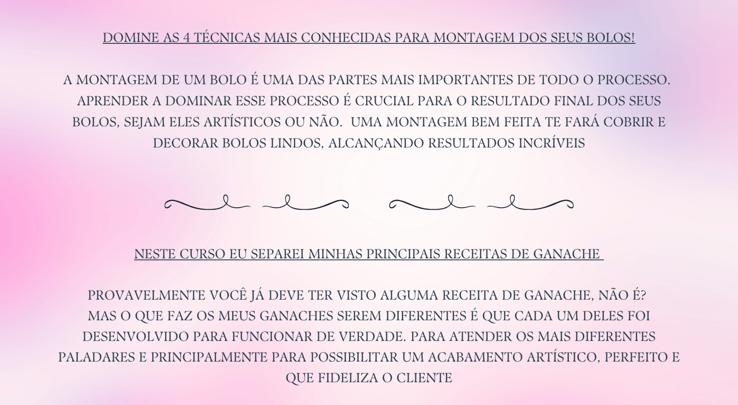 E é justamente aprendendo a trabalhar com Ganache, com a receita certa, com as dicas certas, que você vai adentrar nesse universo!